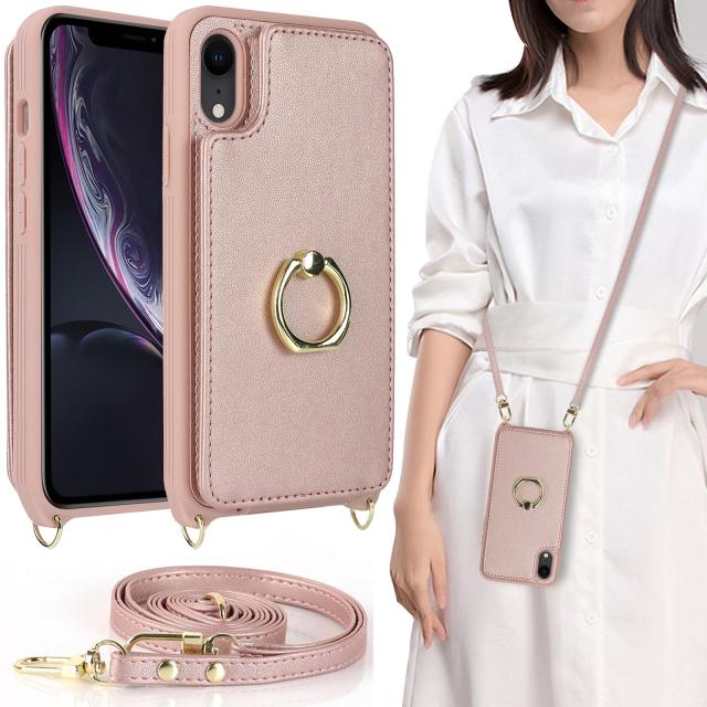 iPhone XR ケース 手帳型 ショルダー リング付きケース ストラップケース 背面 手帳型 上下開き ストラップ付き カバー iphone10R ショルダーケース リング ポシェット iPhoneXRケース アイホン10rケース アイフォン10rケース iPhone10rケース アイホン10r アイフォン10r アイ