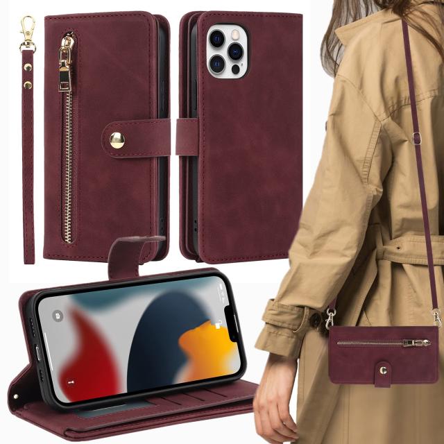 iPhone12 ケース / iPhone12 pro ケース 手帳型 ショルダー クロスボディ iPhone 12 iPhone12 pro 手帳型 カバー アイフォン12 アイフォン 12プロ ケース アイフォン 12pro アイフォン 12 pro アイフォン12pro 12 プロ 適用 case iCoverCase ストラップホール付き スナップ 留め具 ジッパー カード収納 バッグ スタンド ハンドストラップ ロングストラップ マグネット 留め具 肩がけ 首掛け 斜め掛け カードケース ファスナー ストラップ付き カバー ショルダーケース クロスボディケース カード入れ スマホケース 携帯カバー ワインレッド