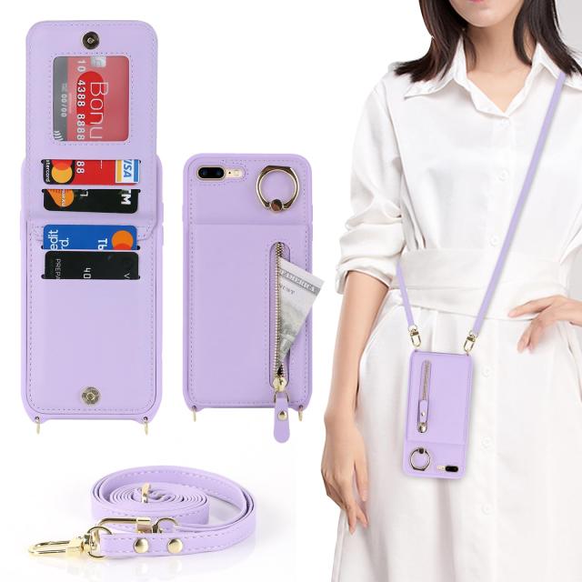 iPhone7plus / iPhone8plus ケース ショルダー リング付きケース ストラップケース カードケース 背面フリップ 手帳型 上下開 iphone 7 plus 8 plus ショルダーケース リング ポシェット アイホン 7プラス 8プラス iphone7プラス iphone8プラス ケース アイフォン7plus スマホケース アイフォン 7plus アイフォン8plus アイフォン 8plus case カバー アイホン7plus アイホン8plus アイフォン7プラス アイホン7プラス アイフォン8プラス アイホン8プラス ケース 適用 iCoverCase リング付き カードケース カード収納 スナップ式 横置き スタント 肩がけ 首掛け 斜め掛け ファスナー ストラップ付き ショルダーケース カード入れ カバー スマホケース 携帯カバー パープル