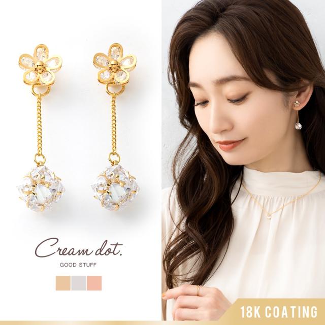 【ゆうパケット送料無料】ピアス 金属アレルギー ニッケルフリー 18kコーティング バックキャッチ 2way フラワー レディース 揺れる パヴェ ビジュー 大人 予備キャッチ ノーマルキャッチ ゴールド シルバー ピンクゴールド