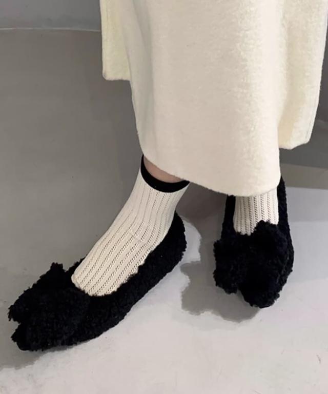 可愛いモコモコボアバレエシューズ、あたたかくやわらかな履き心地。
