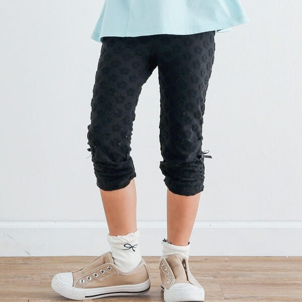 リボン付き裾ギャザー花ドット柄7分丈レギンス(80~130cm)