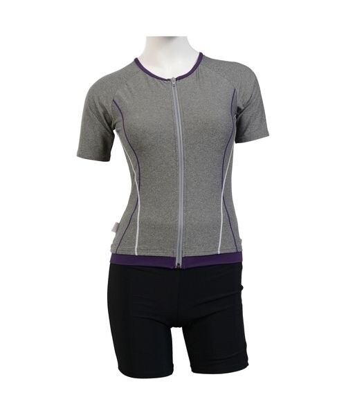 アスフォーム(ATHFORM)/フィットネス レディースセパレート半袖水着フルジップ