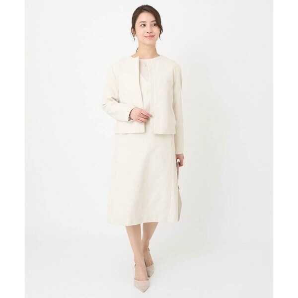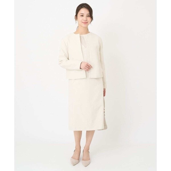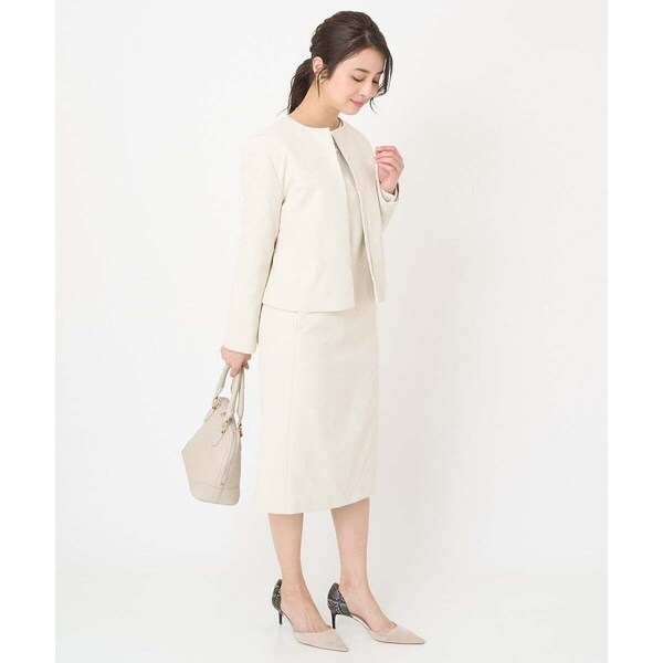 インナーにブラウスを合わせれば、お仕事やセレモニー、お食事会にも。ニットなどのカジュアルアイテムを合わせればデイリーにと活躍してくれます。同素材のブルゾン【F1JFV28230】もご用意しているので、セットアップで着こなせばよりきんと感のある印象に。