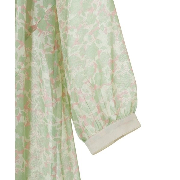 春の優しいイメージを感じさせる多色フラワープリントが目を引くワンピース。