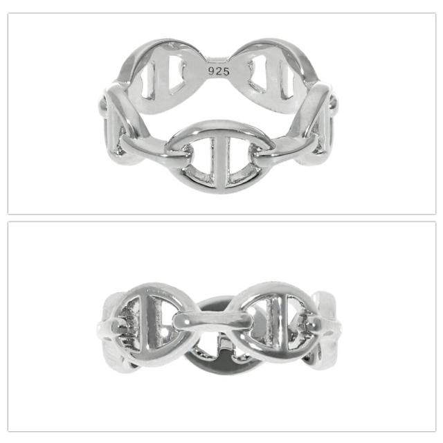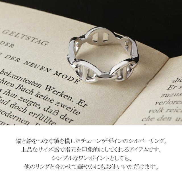 錨と船をつなぐ鎖を模したチェーンデザインのシルバーリング。