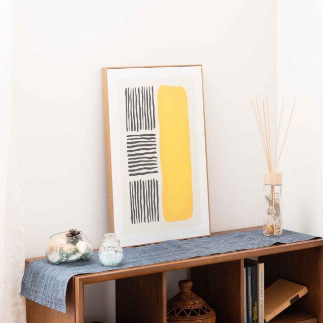 A2サイズは、壁掛けカレンダーや、新聞紙1ページの大きさとほぼ同じくらいの身の回りで多く見られるサイズです。壁に掛けたり、棚の上に立て掛けたり、季節や気分に応じてアートを飾るだけで、いつもの場所がディスプレイコーナーに変身。