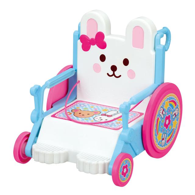 実際の車いすユーザーに監修いただき、メルちゃんのくるまいすができました。かわいいうさぎさんデザイン?