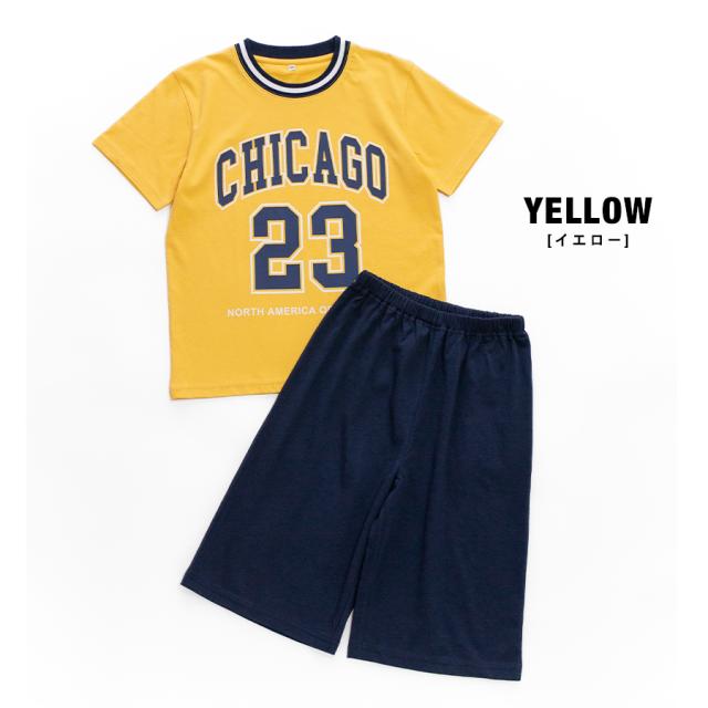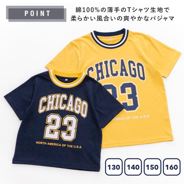 パジャマ キッズ 男の子 綿100% 半袖 春 夏 柔らかく軽い薄手の快適Tシャツ ナンバー プリント ネイビー イエロー 130 140 150 160 おそろい 子供 ボーイズ ジュニア 部屋着 ルームウェア メール便なら 送料無料 70198