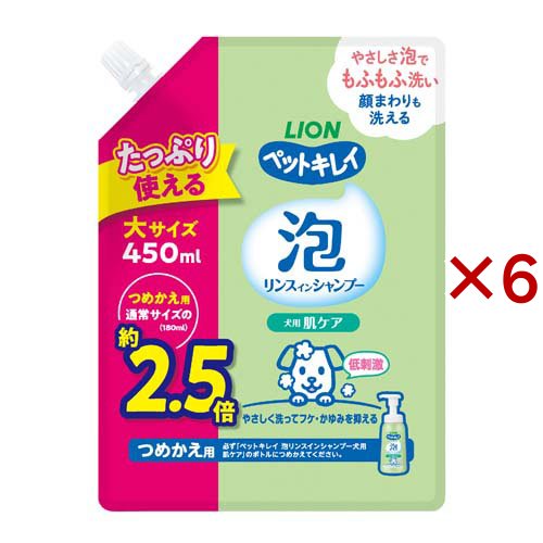 PK 泡リンスインシャンプー 肌ケア 犬用 つめかえ用 大容量(450ml×6セット)[ペットの雑貨・ケアグッズ]