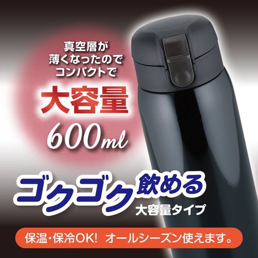 和平フレイズ 水筒 マグボトル 600ML ブラック ワンタッチ栓 真空断熱ボトル マイボトル 保温 保冷 RH-1273