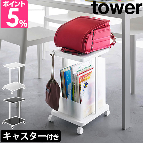 山崎実業 ランドセルラック ワゴン フック付き 収納雑貨 キャスター付き シンプル モノトーン デスク下 便利 デスク 移動 インテリア 省スペース 子供部屋 教科書 収納 リビング ランドセル ダイニング リュック オフィス カバン 学習用品 ビジネスバッグ ビジネスリュック yamazaki タワーシリーズ 黒 ブラック 白 ホワイト ランドセル収納ラック タワー キャスター付き 2段 tower 1747 1748 4903208017473 4903208017480