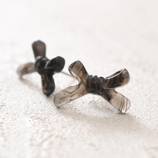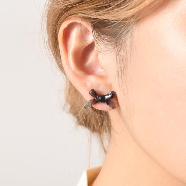 新作 ピアス レディース リボン クリア ミニ 両耳用 かわいい プレゼント 韓国 おしゃれ きれいめ 大人 上品 スタッド 秋 冬
