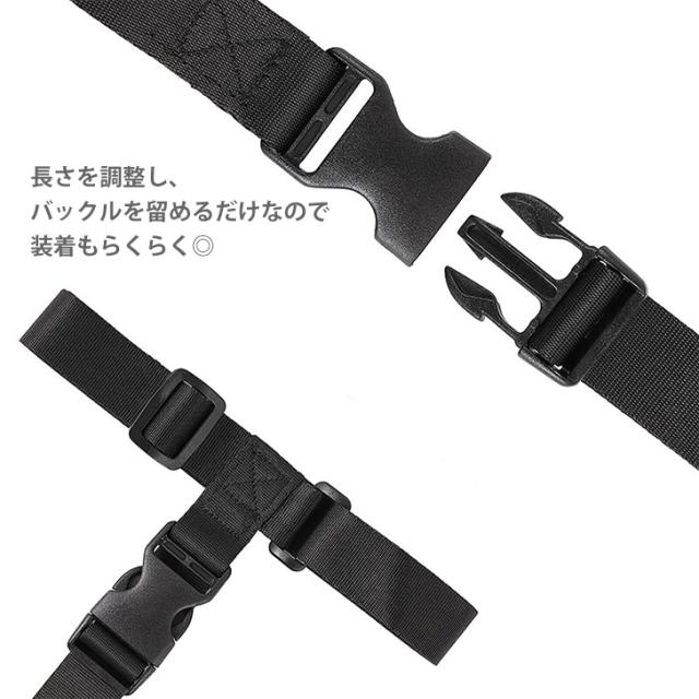 長さを調整し、バックルを留めるだけなので装着もらくらく◎