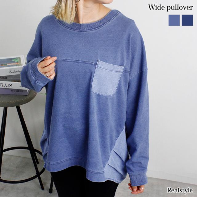 ●デニム風切替ワイドプルオーバー
