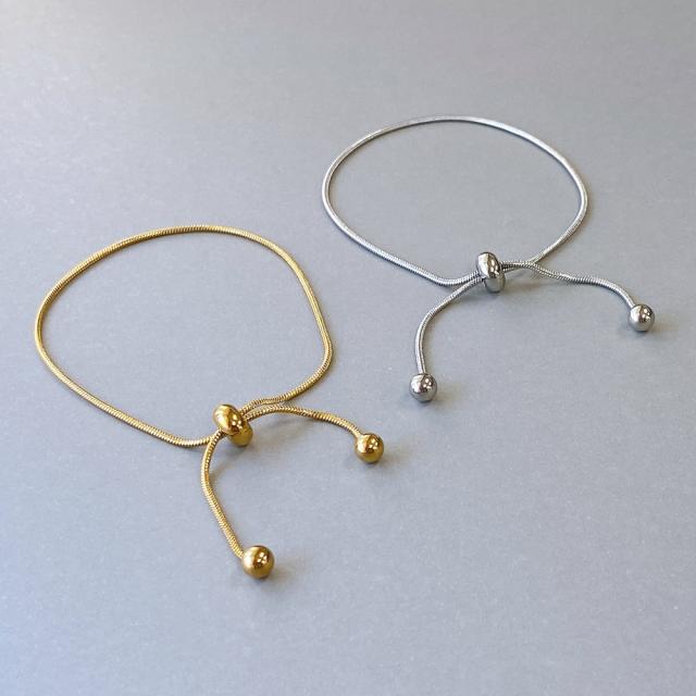送料無料 スライド式スネークチェーンステンレスブレスレット ブレス スリム サージカルステンレス 金属アレルギー対応 レディース 華奢