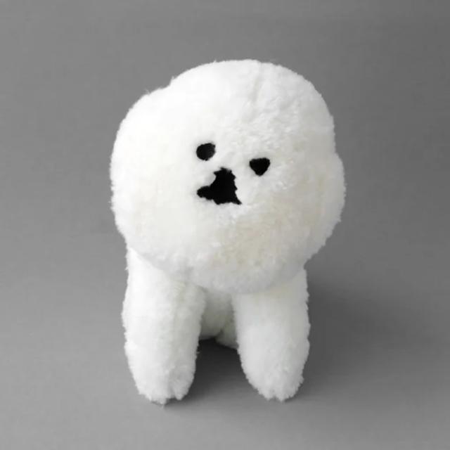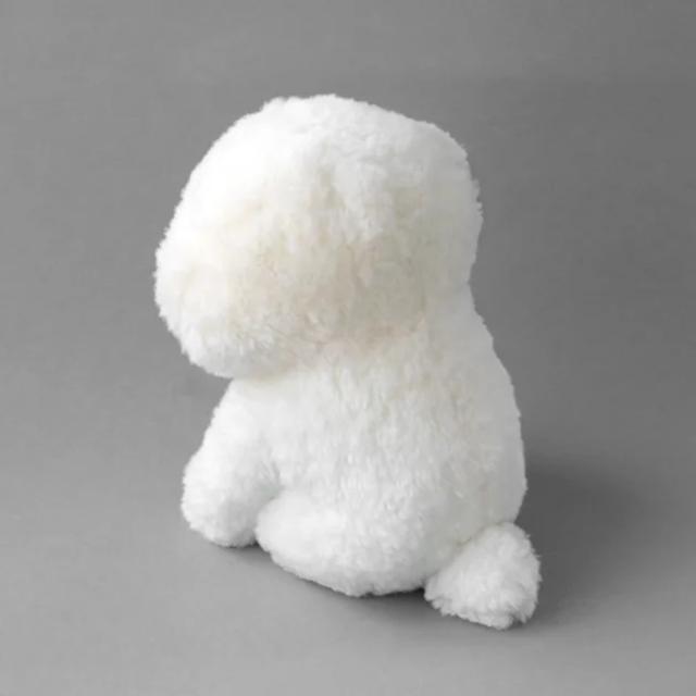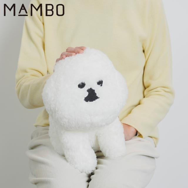 イラストレーター塩川いづみさんの描いた、ビション・フリーゼがモチーフ。人気のMAMBOシリーズに、お座りポーズのぬいぐるみが出来ました。ふわふわ、モコモコの真っ白な毛並。とても気持ちのよい触り心地です。丁寧な刺繍で再現されたつぶらな目鼻が、毛に若干埋もれています。本体のお尻のネームタグ(縫い付け)に、MAMBOのイラストが入ったタグ(取り外し可能)が付いています。大人が膝に乗せるとこれくらいのサイズ。本物の犬のように見つめて、なでて、可愛がっていただけましたら幸いです。一体ごとに、体のバランスや表情において、若干の個体差がございます。あらかじめご了承ください。