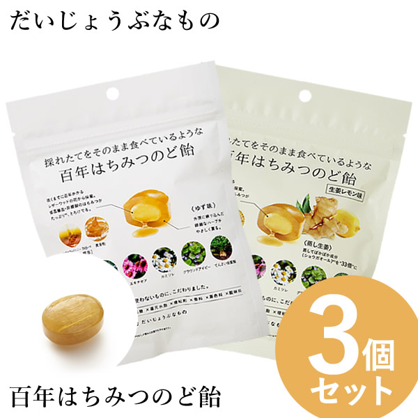 だいじょうぶなもの 百年はちみつのど飴 ゆず味/生姜レモン味 (レザーウッドハニー + ハーブキャンディ) 3個セット (メール便送料無料) のど飴 レザーウッドハニー ハーブキャンディ はちみつ ノンシュガー 美味しい ギルトフリー おやつ