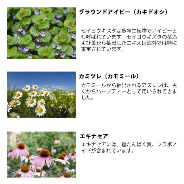 麦芽飴(国内製造)、てんさい含蜜糖、はちみつ、レモン果汁、生姜粉末、ハーブ粉末 エキナセア、カミツレ、カキドオシ 、プロポリスエキス