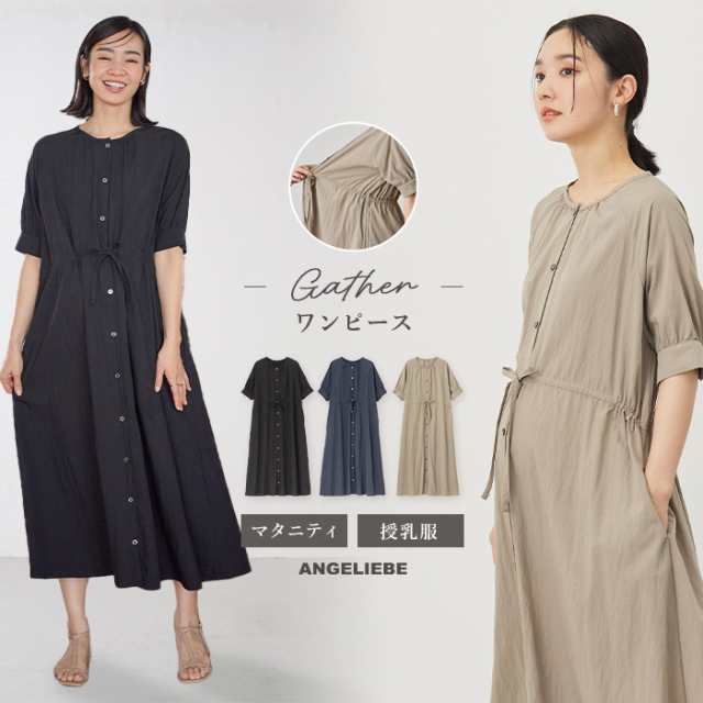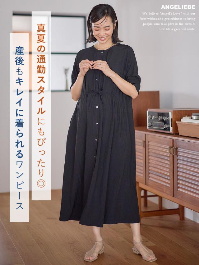 マタニティ ワンピース 前開き 半袖 オフィス きれいめ ウエストギャザー 半袖ワンピース 授乳服 妊婦服 仕事服 通勤 無地 大きいサイズ