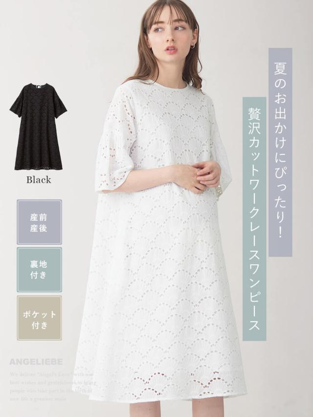 カットワークレース半袖ワンピース マタニティ・授乳服【出産後も長く着られる】