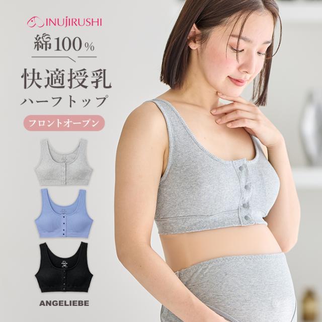 授乳ブラ マタニティブラ 犬印本舗 綿100% 肌にやさしい ハーフトップ ブラジャー ナイトブラ ノンワイヤー 下着 授乳 垂れ防止 妊婦