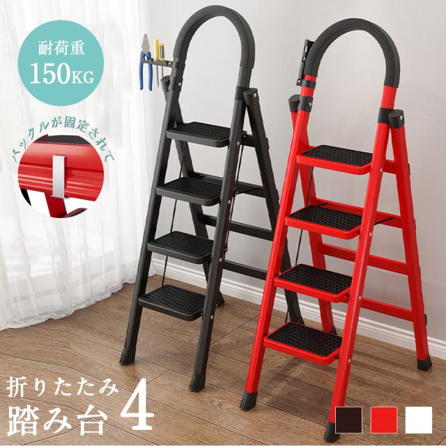 脚立 踏み台 手すり付 4段 はしご 梯子 アルミ 折りたたみ ステップ台 幅広 ステップ 滑り止め 室内 おしゃれ おすすめ 軽い
