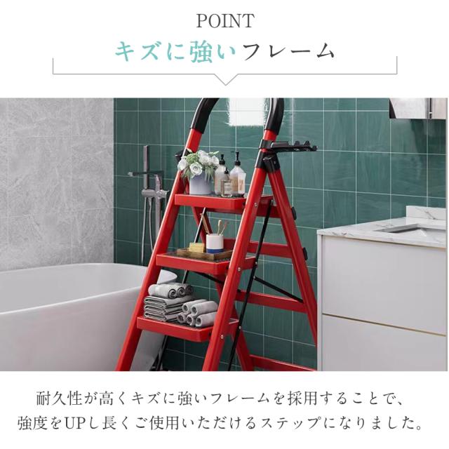 使い勝手の良さとおしゃれなデザインで、お部屋のアクセントにもなる脚立。安心して高所作業ができることで、日々の暮らしをサポートします。忙しい中でも快適な生活を送るためにぜひおすすめしたいアイテムです。