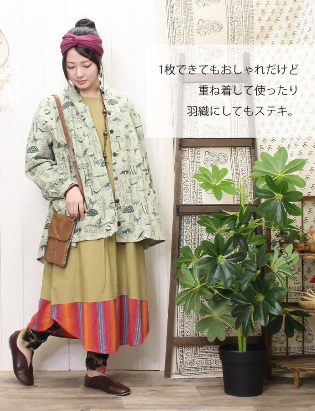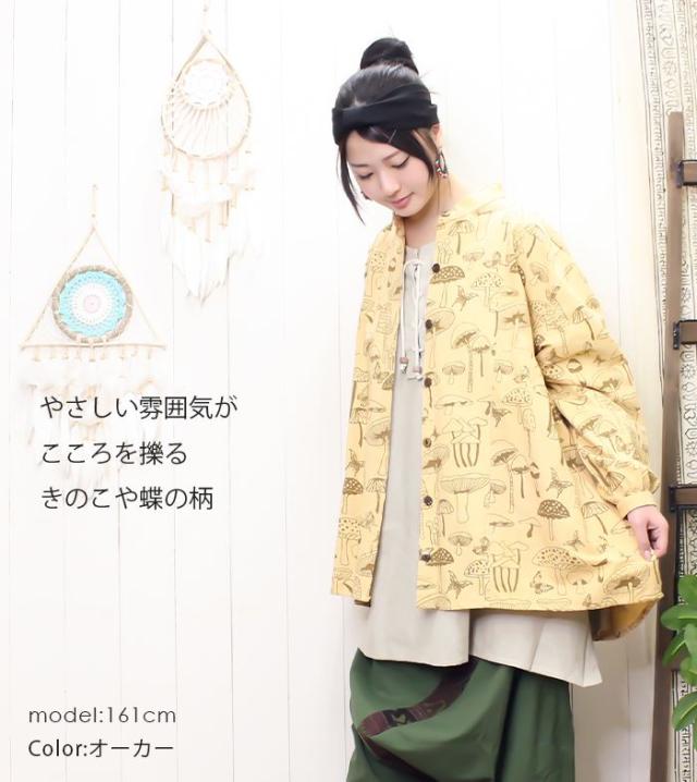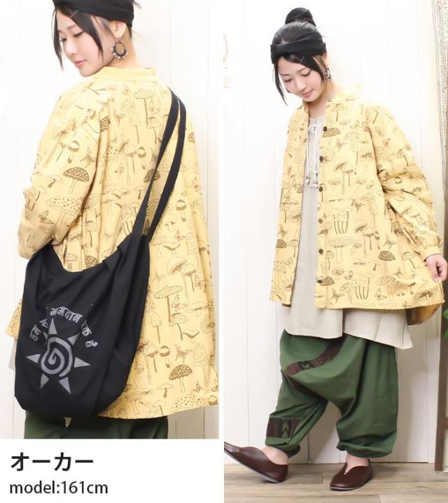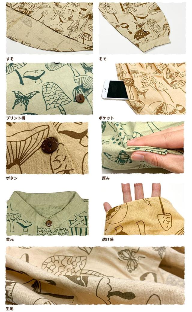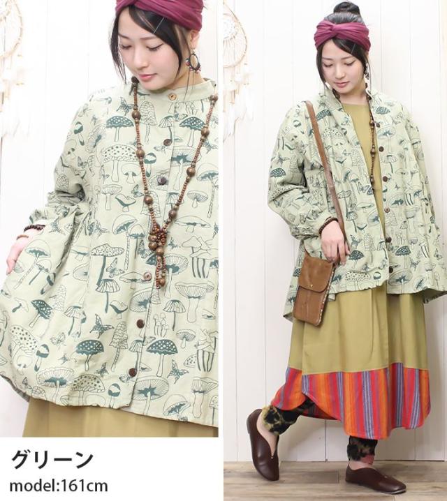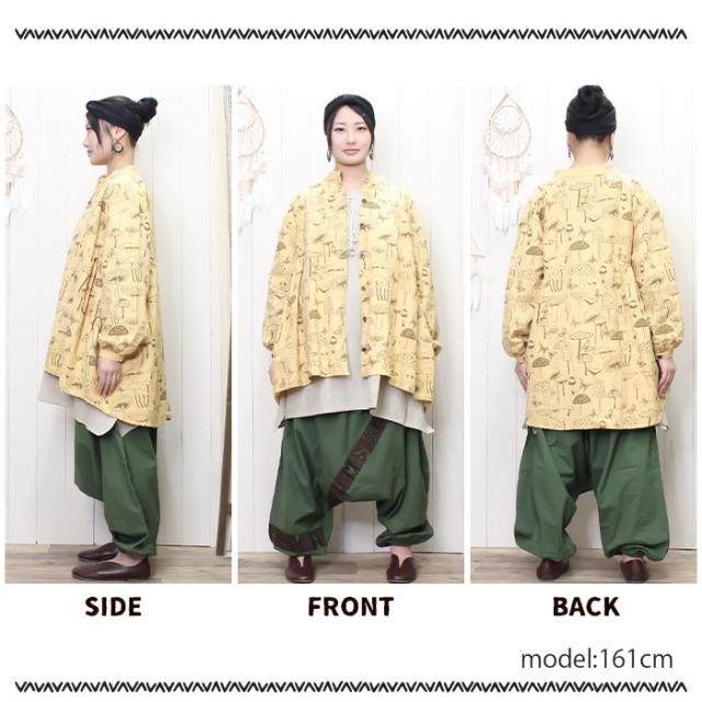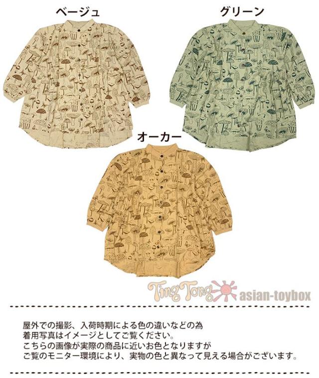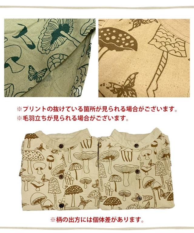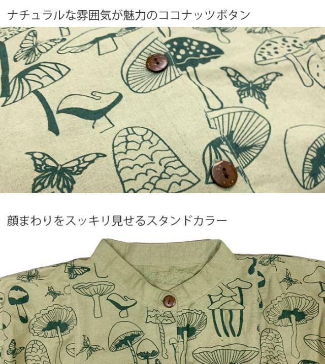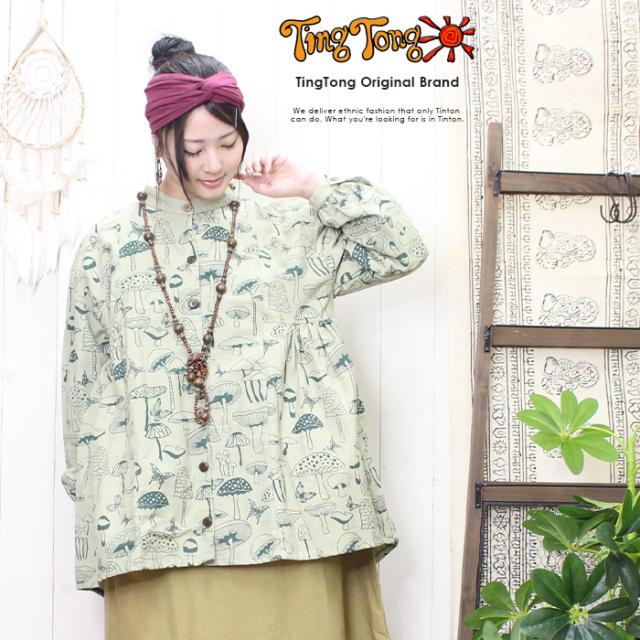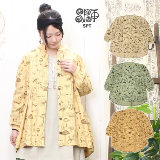ブラウス カーディ チュニック 柄シャツ きのこ ノスタルジック エスニック アジアン 【SPT】 たっぷりきのこシャツ 長袖 2025年春夏