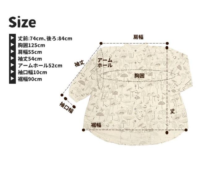 丈 前:74cm、後ろ:84cm 胸囲 125cm 肩幅 55cm 袖丈 54cm アームホール 52cm 袖口幅 10cm 裾幅 90cm