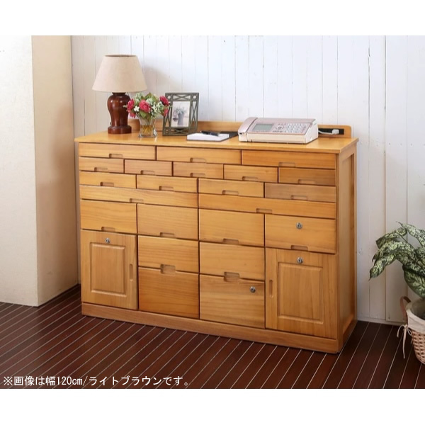 引き出しが多く、収納力抜群。鍵付きだから、大切なものの保管にもピッタリ。便利なコンセント付き。 ■カラー:ダークブラウン ■サイズ:約幅120×奥行32×高さ83cm ■素材:本体:天然木(桐)・桐合板(両方ラッカー塗装済み) ■鍵付き収納有 ■コンセント付き ■隠しキャスター付き ■一部組立式(コンセント部板のみ取付) ※商品説明画像に色・サイズ違いの商品も使用しております。 ※記載は商品仕様の一部です。仕様説明不足等の理由での返品はできません。特に適合等は必ずご確認ください。