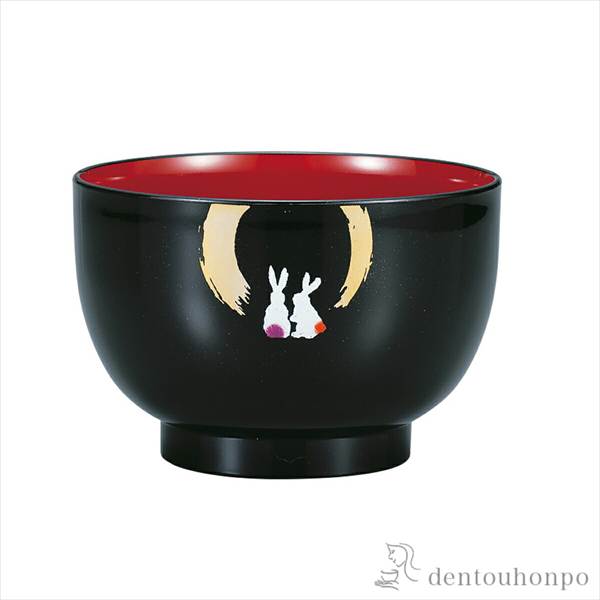 「送料無料」 汁椀 月うさぎ 黒 5個セット ( 雑煮椀 お椀 お吸い物 味噌汁 おすすめ 山中漆器 結婚 出産 内祝い 引き出物 金婚式 )