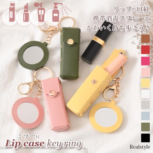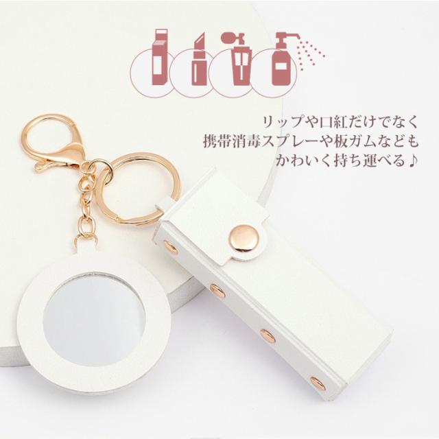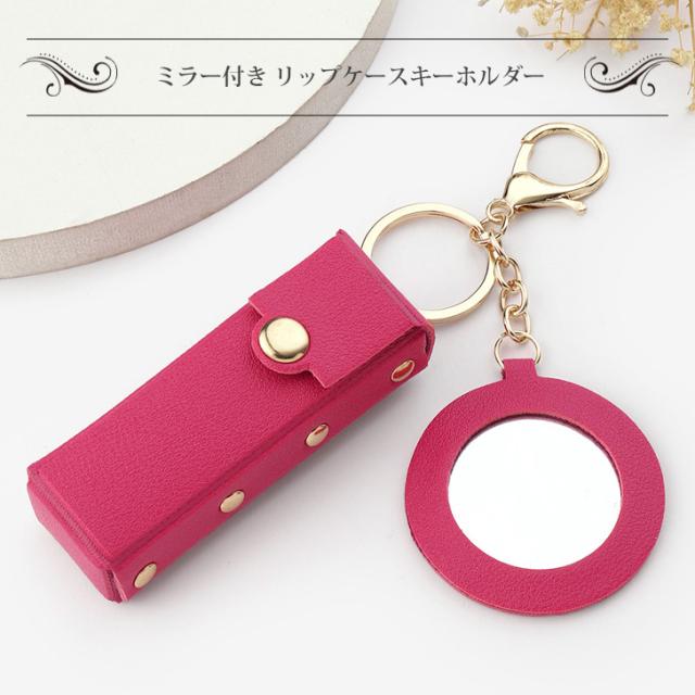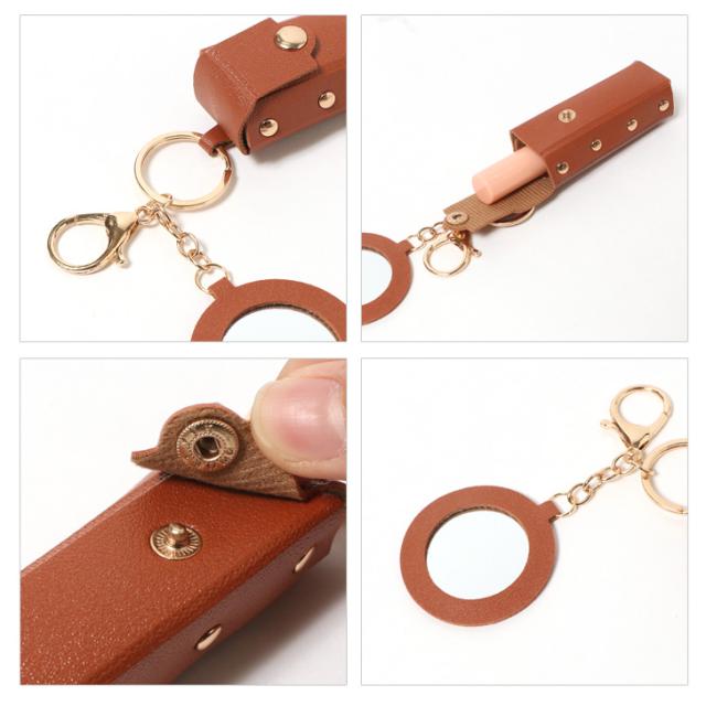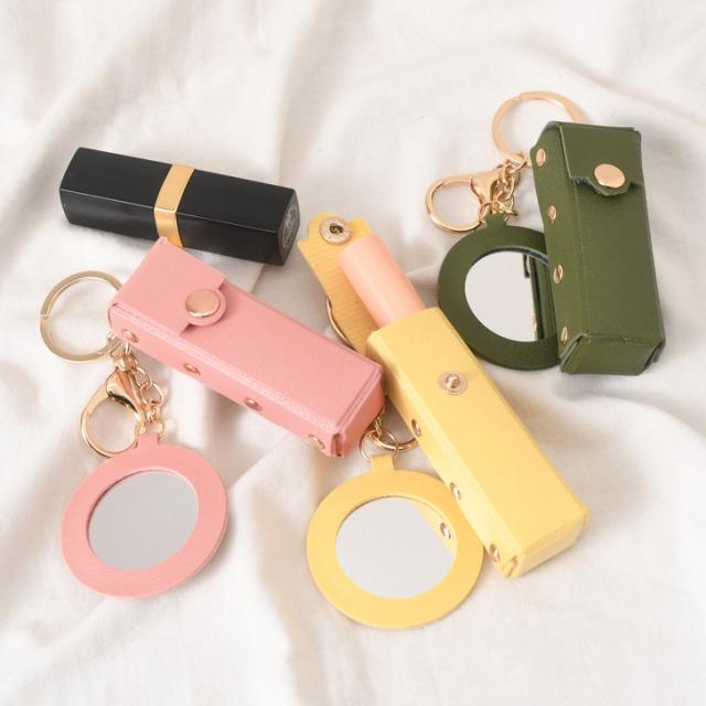 新作 リップケース ミラー付き フェイクレザー 鏡付き キーホルダー ポーチ 小物入れ メイク 化粧 口紅 レディース おしゃれ 携帯 小さめ