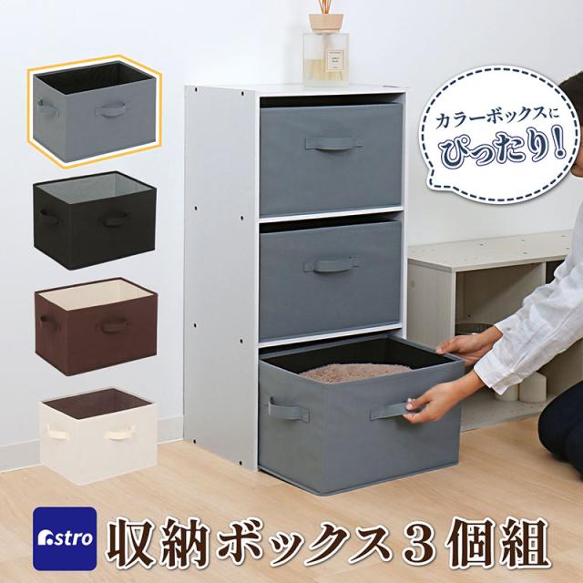アストロ 収納ボックス 3個セット 不織布製 カラーボックスにぴったり グレー×ブラック 容量20L 606-61