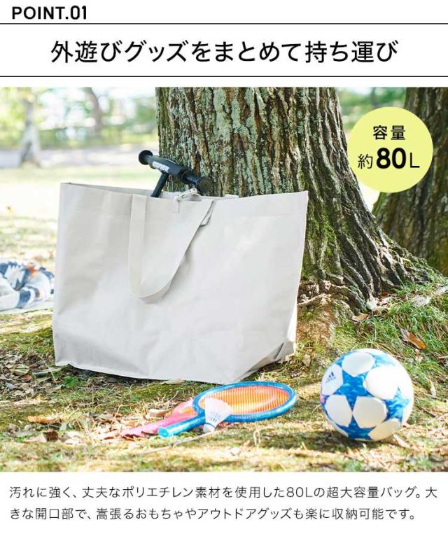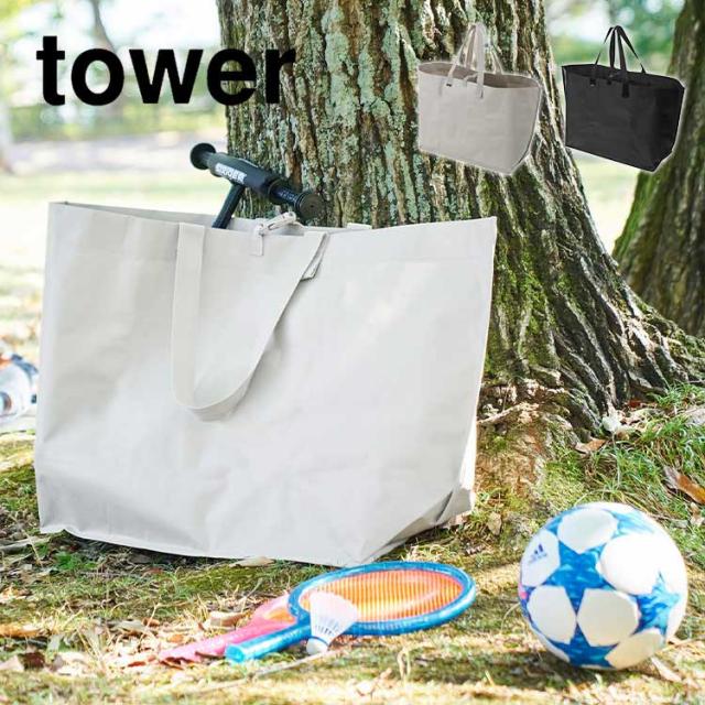 山崎実業 ポリエチレンシート外遊び収納バッグ タワー ワイド tower トートバッグ 大きい 大容量 特大 大型 軽量 袋 ギアバッグ キャンプ アウトドア ランドリー おもちゃ ボール キッズバイク 収納 防水 撥水 丈夫 折りたたみ 持ち運び 肩掛け 1846 1847 無地 黒 防災