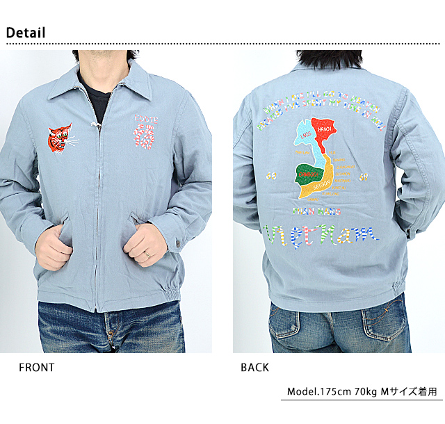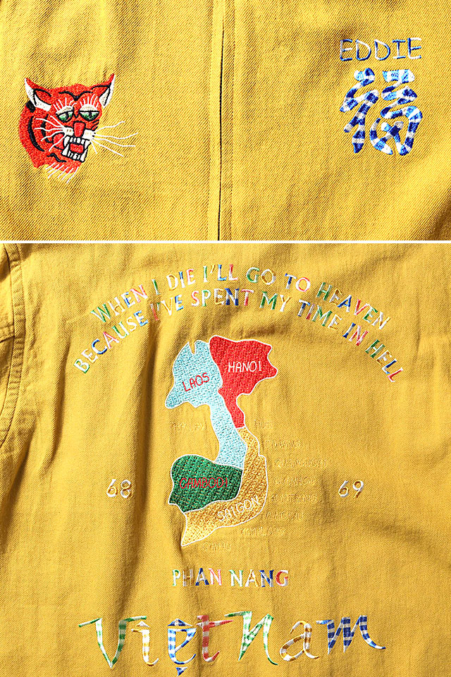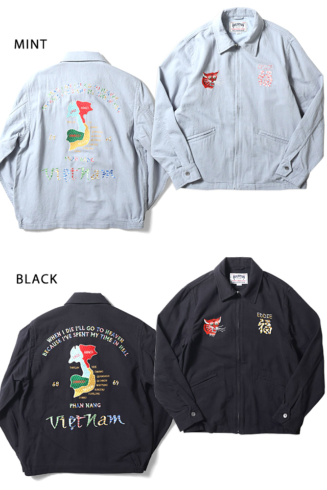 日本で初めてオリジナルのフライトジャケットを生み出し、その後も数々の国内製ミリタリー商品を製造する「ヒューストン」から、コットンリネンベトナムジャケット「MAP」(51353)のご紹介です。 麻の通気性と少しのシャリ感、綿の柔らかさをうまく調和させたライトな綿麻ツイルを使い、裏地を廃止した春夏仕様のベトジャンです。 ヴィンテージベトジャンの柄をイメージし、全体に大きくインパクトのある地図柄を採用しました。 より華やかに見えるグラデーション糸を使用した刺繍で仕上げられています。 | |||||||||||||||||||||||||