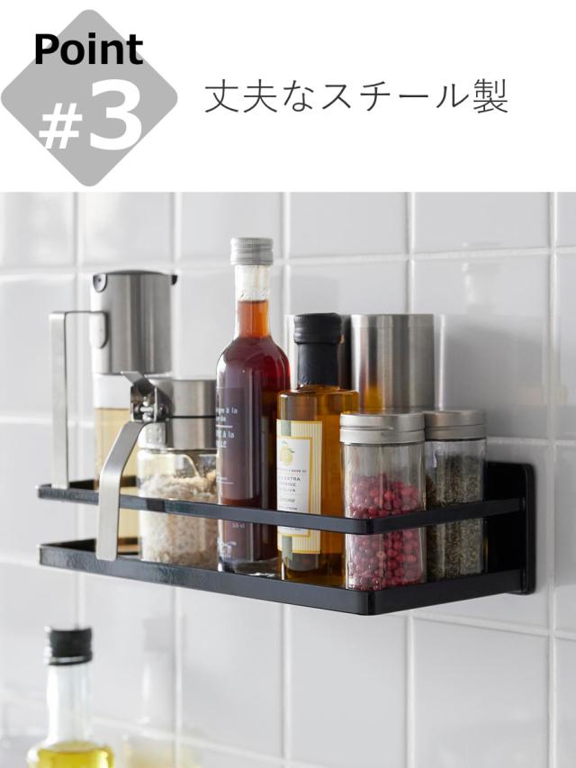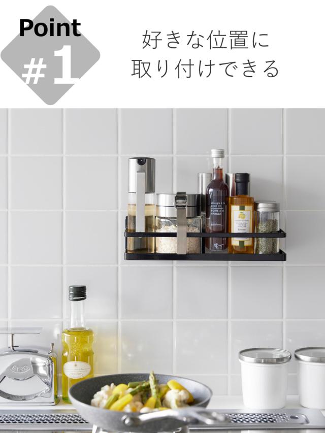 コンロ周りに取り付けると、スパイスボトルや調味料がまとめて収納でき、サッと手に取りやすくお料理もスムーズです。冷蔵庫扉に取り付けてキッチン雑貨を収納するのもおすすめです。
