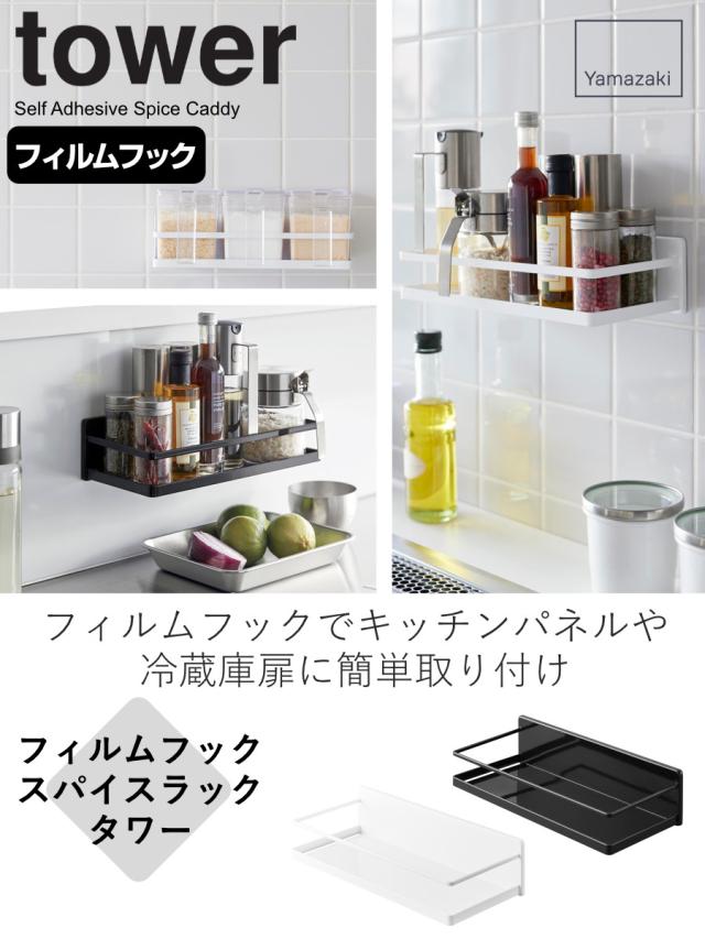 tower 山崎実業 フィルムフックスパイスラック タワー ( タワーシリーズ 調味料ラック スパイスラック マグネット 調味料スタンド 調味料収納 スチール製 フィルムフック 丈夫 キッチン収納 tower 山崎実業 マグネット)