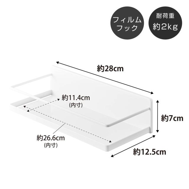 | サイズ | 約幅28×奥行12.5×高さ7cm(フィルムフック含まず) フィルムフック接着面:約幅7.4×高さ7.4cm(1つあたり) 内寸 約幅26.6×奥行11.4cm |