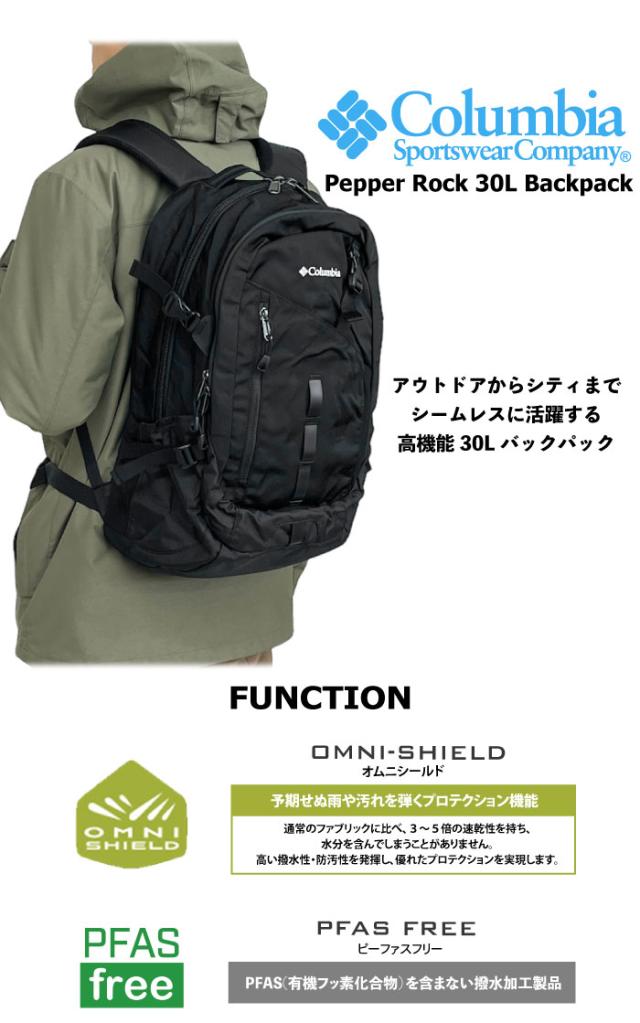 Columbia コロンビア ペッパーロック30L バックパック リュックサック 撥水 防汚 メンズ レディース 通勤 通学 学生 アウトドア キャンプ 登山 ハイキング トレッキング フェス 旅行 負担軽減 PU8711