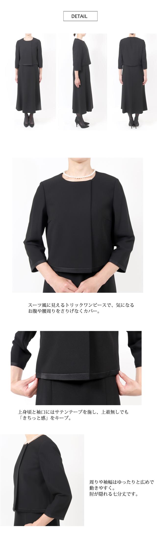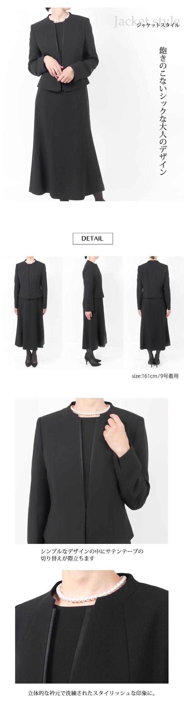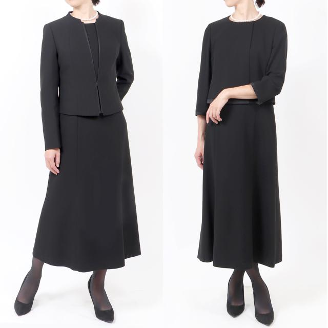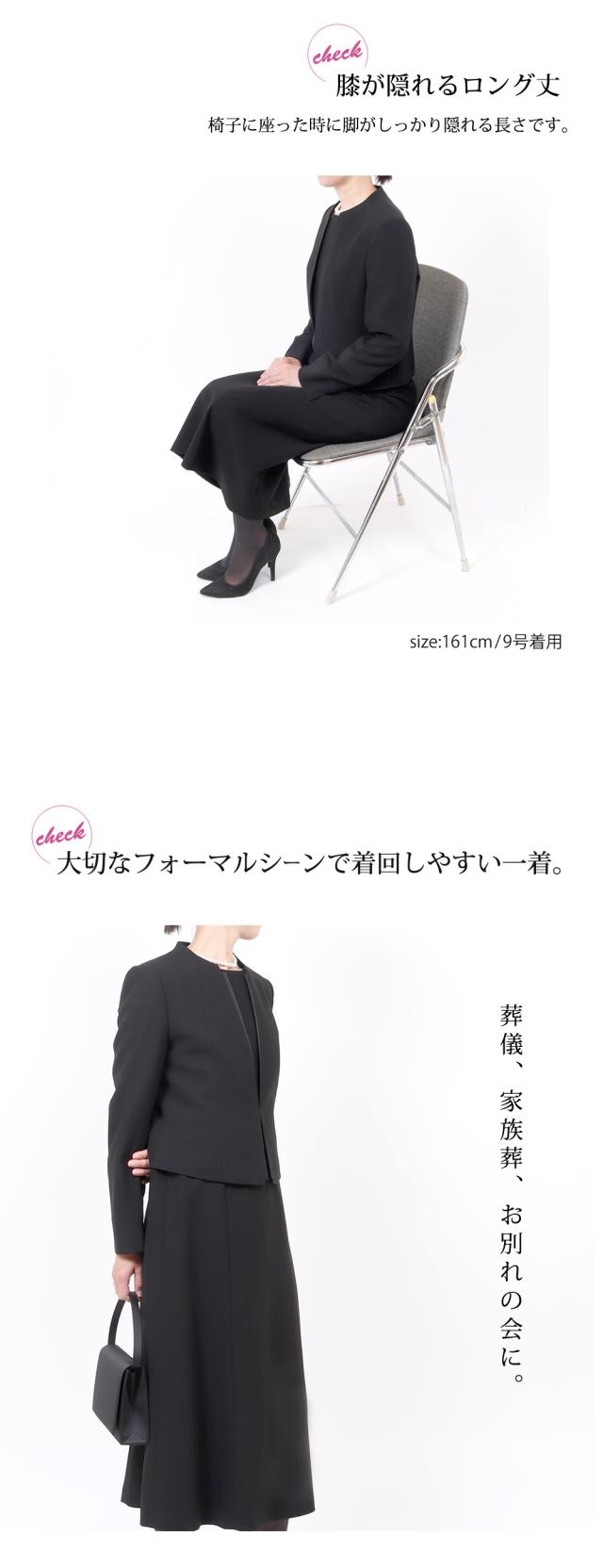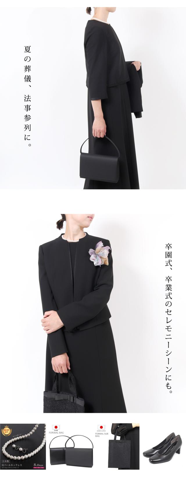 楽ちん前開き ブラックフォーマル セレモニースーツ 喪服 女性 S M L LL 3L 4L 5L