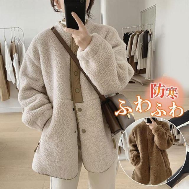 ファージャケット レデイース フェイクファーコート ボアジャケット 毛皮コート ブルゾン モコモコ 羽織り 防寒 秋冬