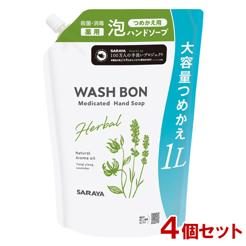 ウォシュボン(WASH BON) ハーバル薬用ハンドソープ 詰替用 大容量 1L×4個セット 医薬部外品 サラヤ(SARAYA)【送料込】