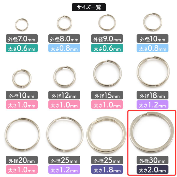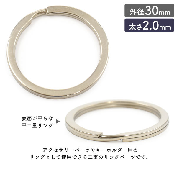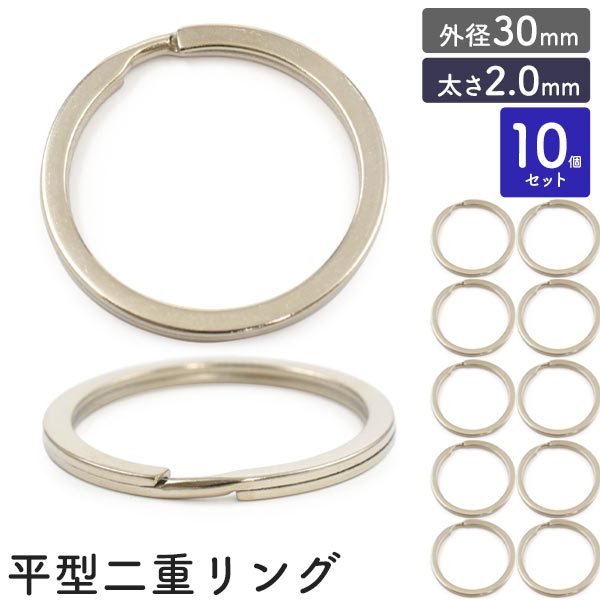 平型二重リング 10個セット【外径30mm/太さ2.0mm】アクセサリーパーツ 銀色 キーホルダー用リング 二重キーリン クラフトパーツ キーホルダーパーツ ハンドメイド 金具 ハンドメイドパーツ 輪っか 丸い