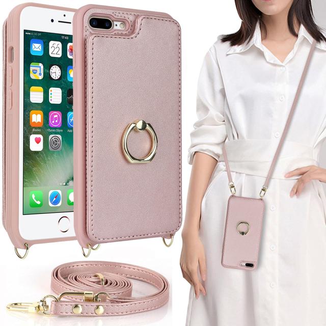 iPhone7plus / iPhone8plus ケース ショルダー リング付きケース ストラップケース カードケース 背面 手帳型 上下開き ストラップ付き カバー iphone 7 plus 8 plus ショルダーケース リング ポシェット アイホン 7プラス 8プラス iphone7プラス iphone8プラス ケース アイフ