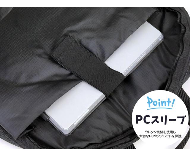 | ポケット | (外側)メッシュオープンポケット×2、メッシュファスナーポケット×1、ファスナーポケット×3 (内側)パッド入りポケット×1 |