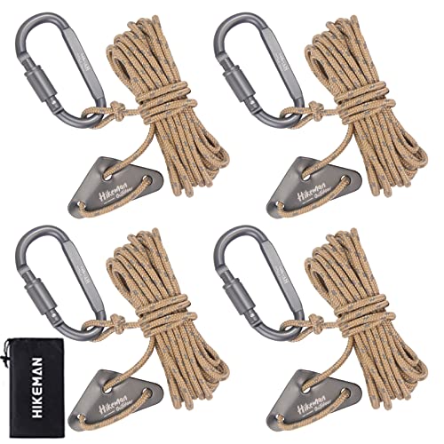 テントロープ パラコード カラビナ付き 調節可能 タープロープ ガイライン 張り綱 反射材入り 太さ 4mm 長さ4M 自在金具 4個セット キャ