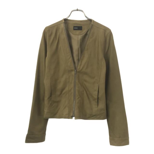 ダブリン ノーカラー ラム レザージャケット グリーン系 DOUBLE n レディース