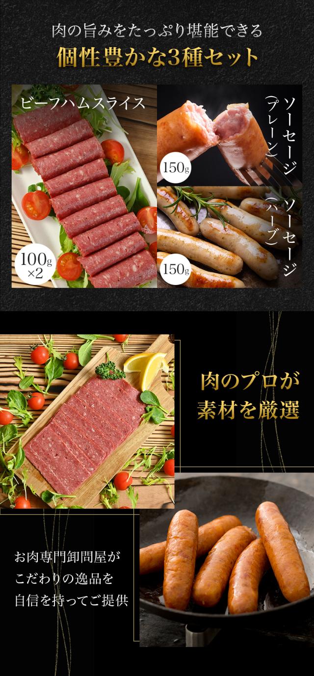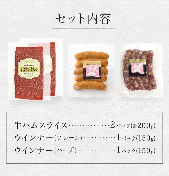 | 品名 | 国産牛肉100% ふんわり食感 Beefハムスライス & TOKYO X あらびきウインナー、ハーブウインナー |