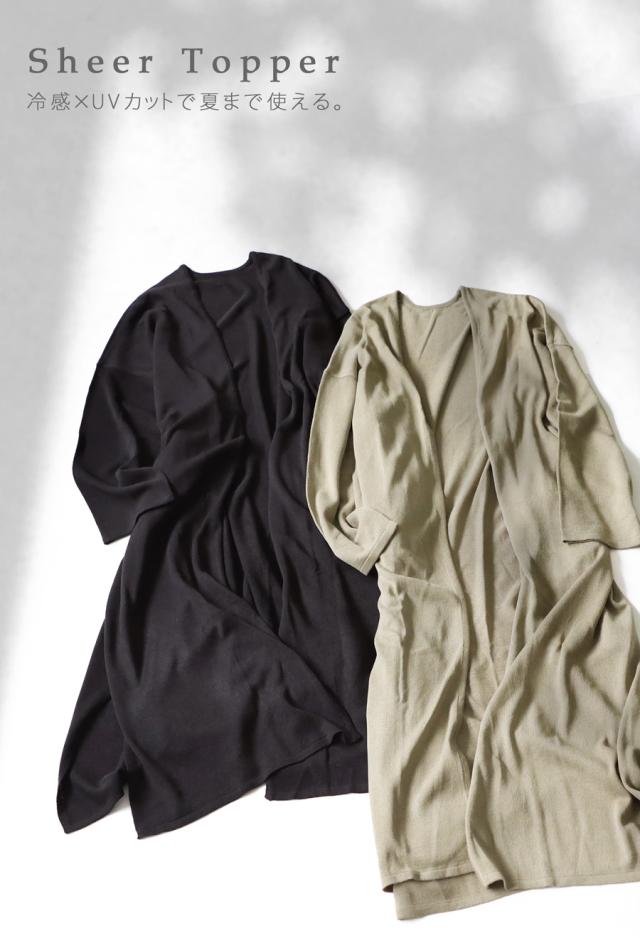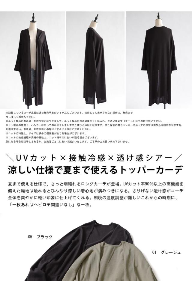 na-00456 長袖 無地 接触冷感 UVカット 機能性素材 機能性ウェア カーデ 羽織り トッパーカーディガン 前開き ゆったり ロング 膝丈 ロングカーデ シンプル 長め丈 薄手 ひんやり